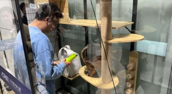 中铁快运济南西站营业部相关负责人介绍,高铁宠物托运服务实行“人宠同出发、同到达”规则,旅客可通过铁路12306客户端“宠物托运”功能查询对应车次,提前2天及以上购买车票并线上预约同车托运宠物服务。为进一步做好服务,主要采取以下3个方面措施:一是采用专用装备,实行隔离运输。投用自主研发的自带空气循环、含氧量和温湿度监测、降噪、除味等功能的高铁专用宠物运输箱,宠物全程存放于宠物运输箱内,并放置在列车高铁快运柜内,可有效防止宠物飞毛、气味、叫声对列车内部环境的影响。二是全程独立存放,实行人宠分开。每趟列车设置一组用于存放宠物运输箱的高铁快运柜,一般位于中部车厢的一端,与旅客乘车空间相对隔离。工作人员全程不开箱,确保车内环境良好和宠物安全。三是加强监测巡视,实行专人看护。工作人员通过宠物运输箱的监测系统观察宠物状态,定时巡视检查,间隔不超2小时,视情况给宠物适当添加饮用水、不予喂食,托运人不能探视宠物。一次托运完成后,工作人员将及时对宠物运输箱清洁消毒,并在列车终到后对高铁快运柜进行全面清洁消毒。抵达目的地车站后,旅客根据短信或电话提示领取宠物。